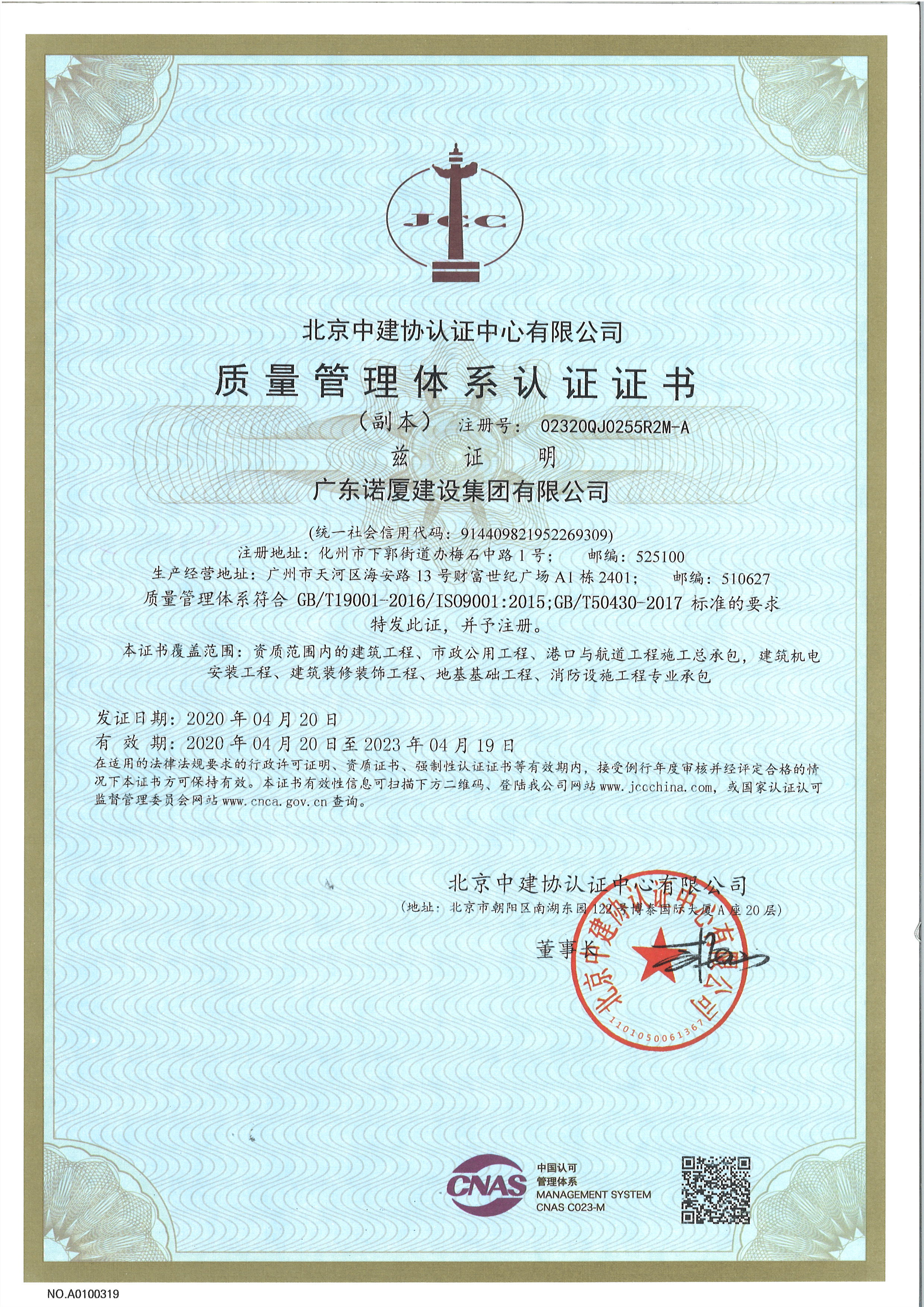 廣東諾廈建設(shè)集團(tuán)有限公司是諾廈集團(tuán)的核心企業(yè),具備國家房屋建筑工程施工總承包壹級、市政工程施工總承包壹級、港口與航道工程總承包、建筑裝修裝飾工程、消防設(shè)施工程、地基基礎(chǔ)工程、機(jī)電設(shè)備安裝工程、體育場地設(shè)施工程、建筑智能化工程、河湖整治工程、水利水電工程等資質(zhì)。......